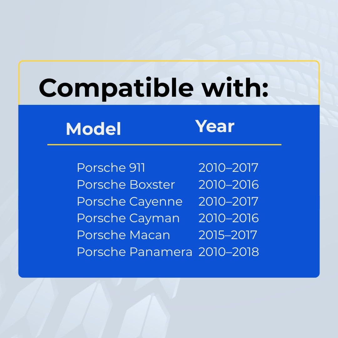 - Not manufactured by, endorsed by, or affiliated with PORSCHE or any vehicle manufacturer.