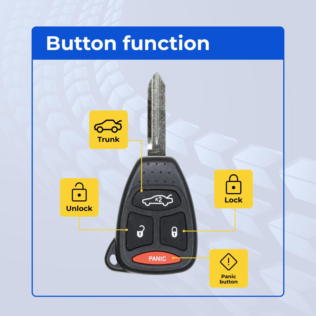 - Count the Buttons — Make sure the replacement has the same number of buttons in the same layout as your current key. This is a 4-button key fob remote. Common configurations: 3-button (Lock, Unlock, Trunk/Panic), 4-button (Lock, Unlock, Trunk, Panic), 5-button (adds Remote Start). A key with different buttons may still work for basic functions but won’t have all features.