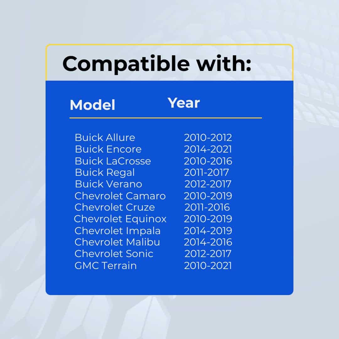- Chevrolet Cruze Equinox Buick Lacrosse: 2008-2023