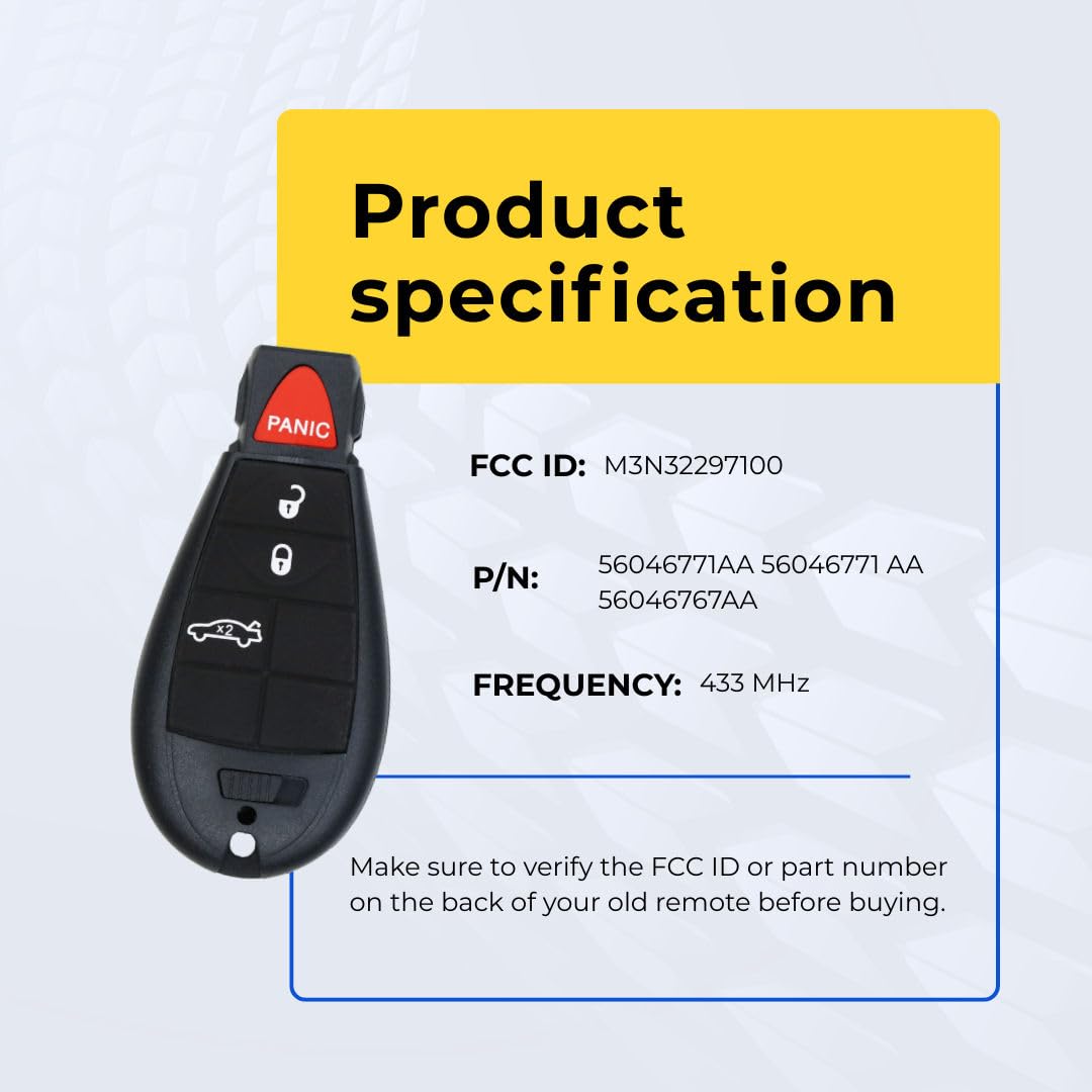Before purchasing a replacement key fob remote for your 2014 Dodge Dart, verify these details to ensure a perfect match: