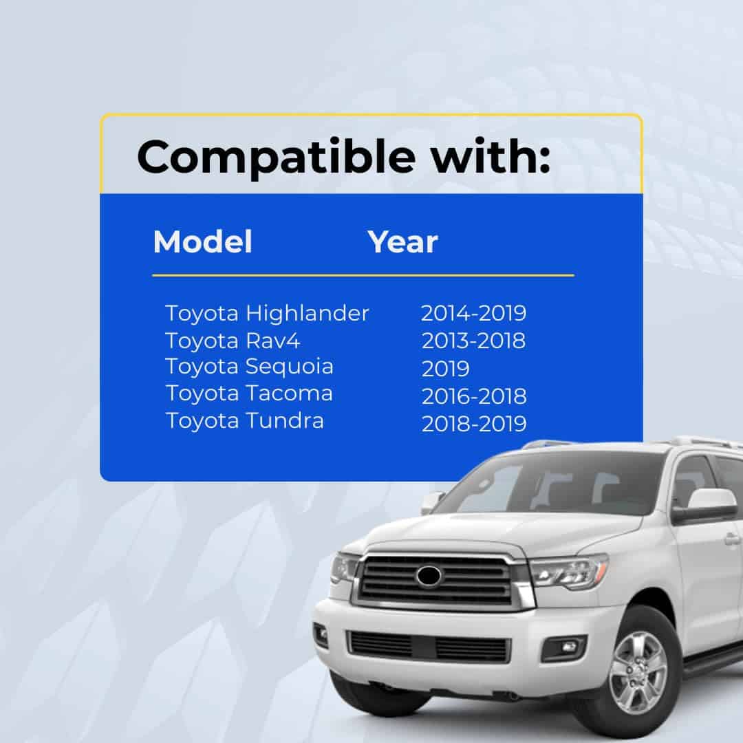 - Not manufactured by, endorsed by, or affiliated with TOYOTA or any vehicle manufacturer.