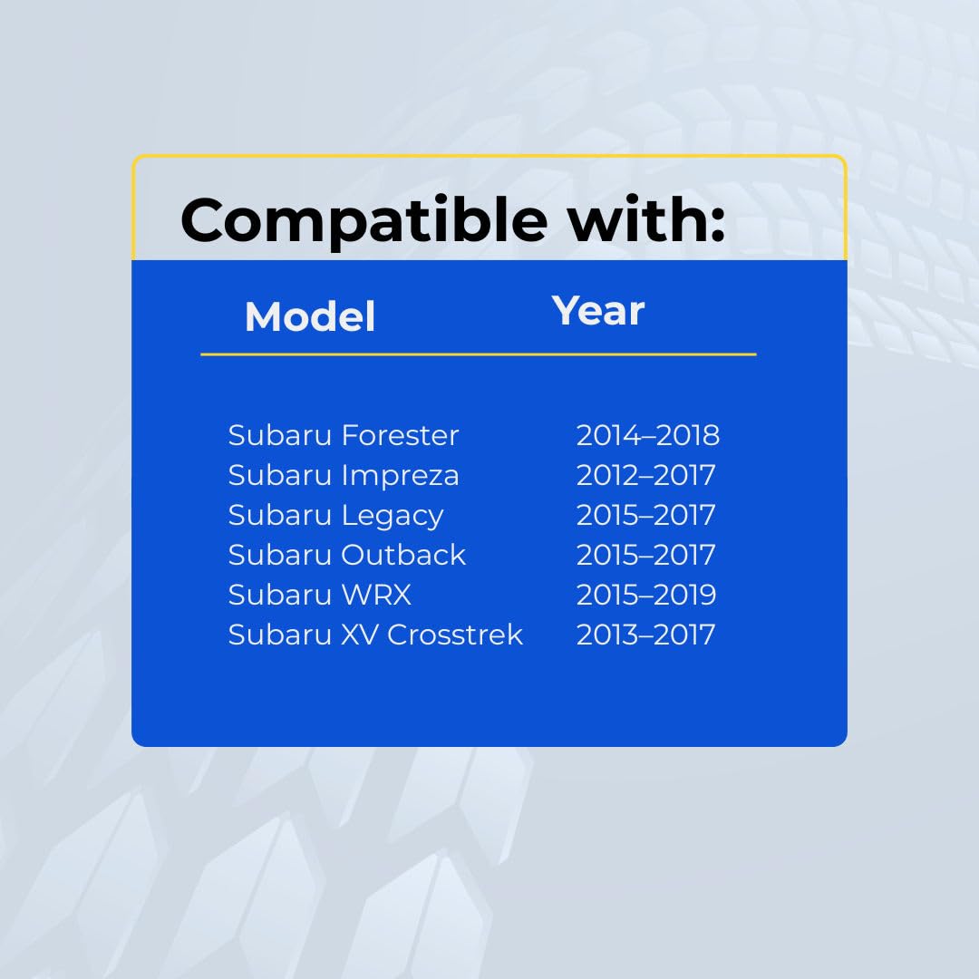 - Not manufactured by, endorsed by, or affiliated with SUBARU or any vehicle manufacturer.