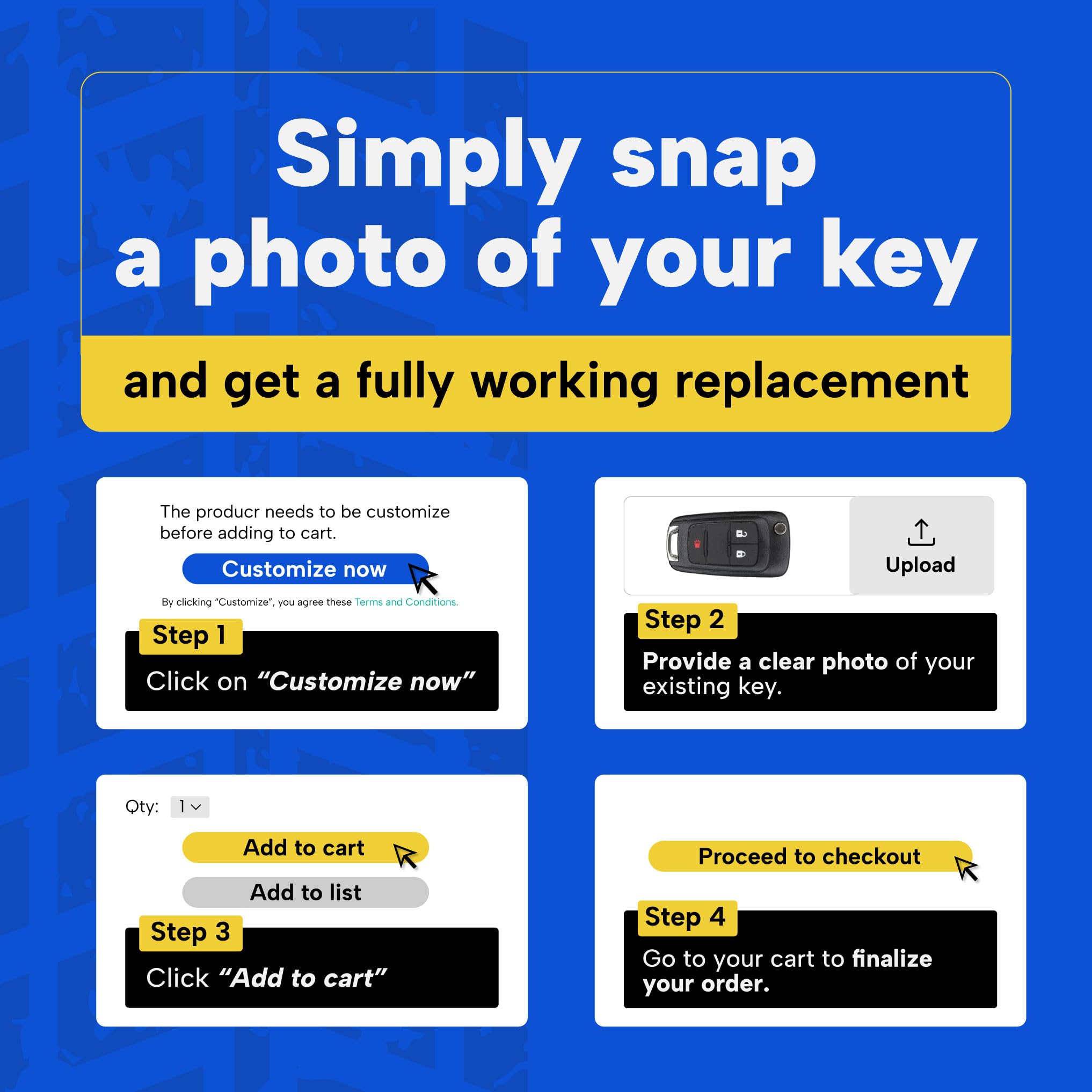 - Contact us — Send us your year, make, model, and a photo of your current key. We’ll help you find the right replacement.